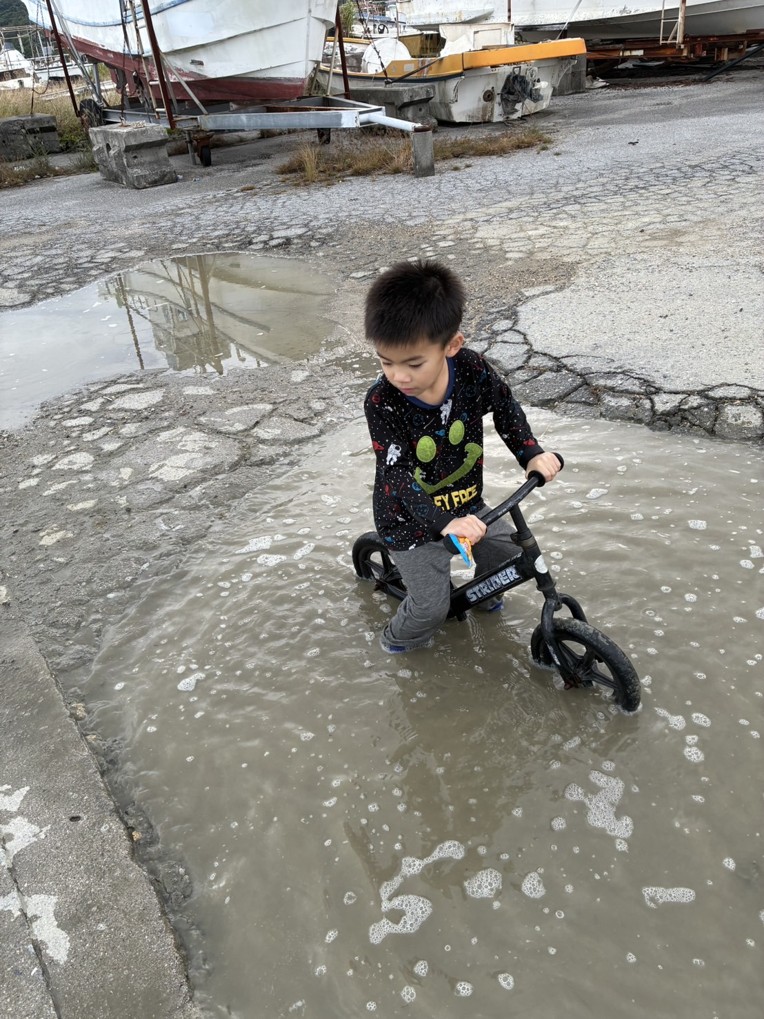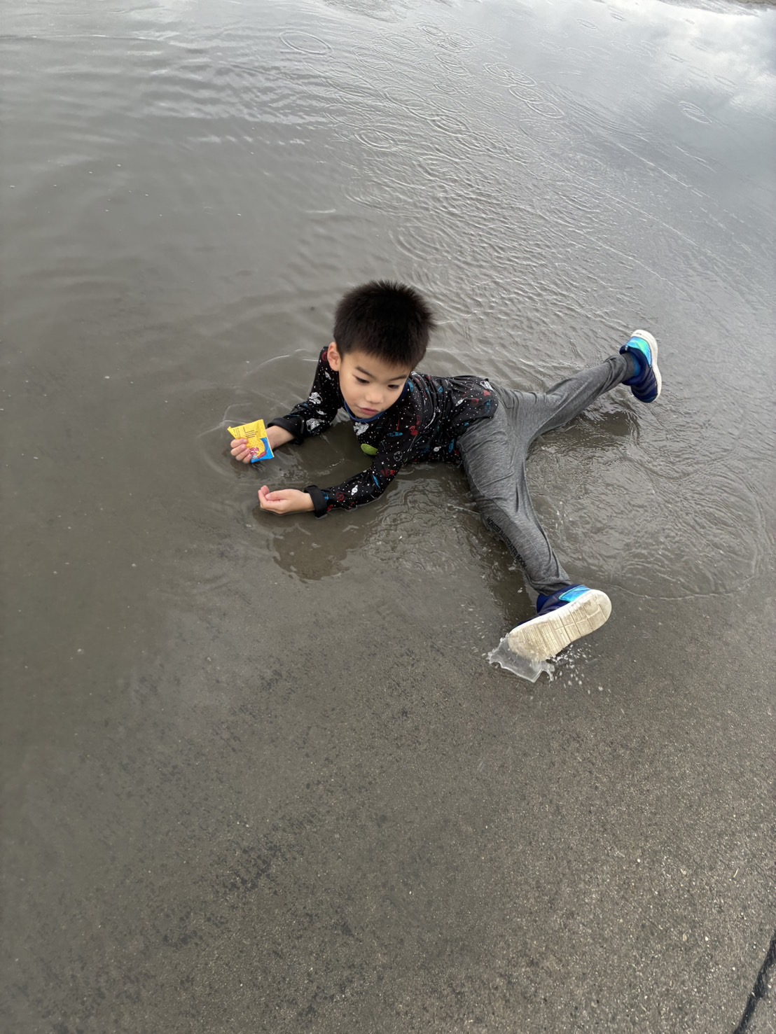 水が大好きな子は、水たまりへダイブ💦😄🌈