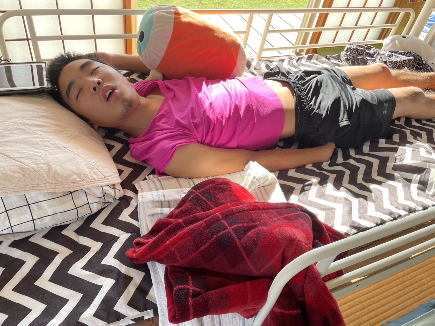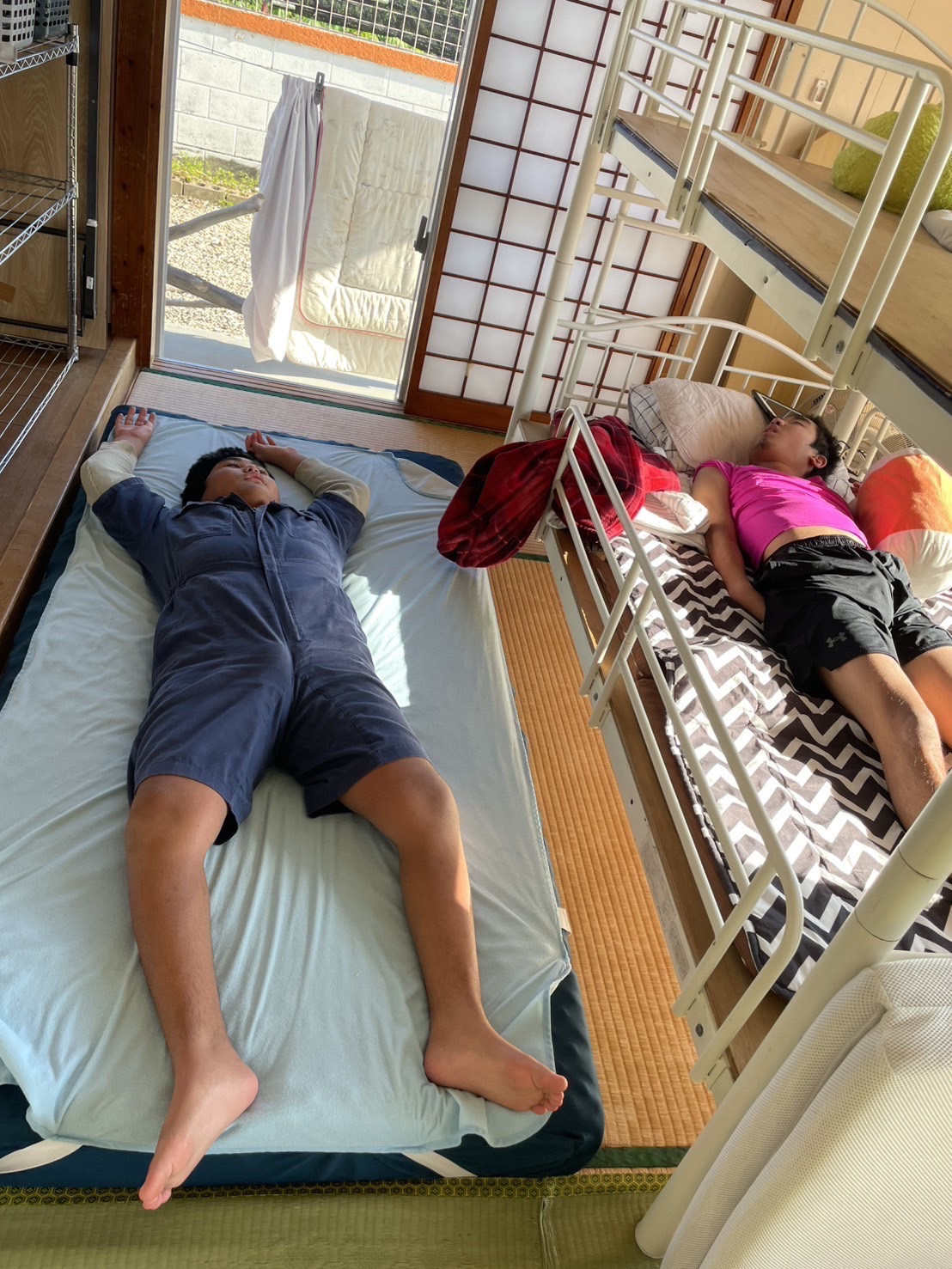お昼ご飯もニコニコで食べました!お昼寝タイムの子もいて、そのそばで一緒にゴロゴロして過ごしました(^^)🌿😌