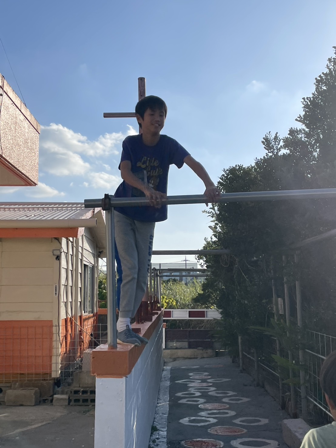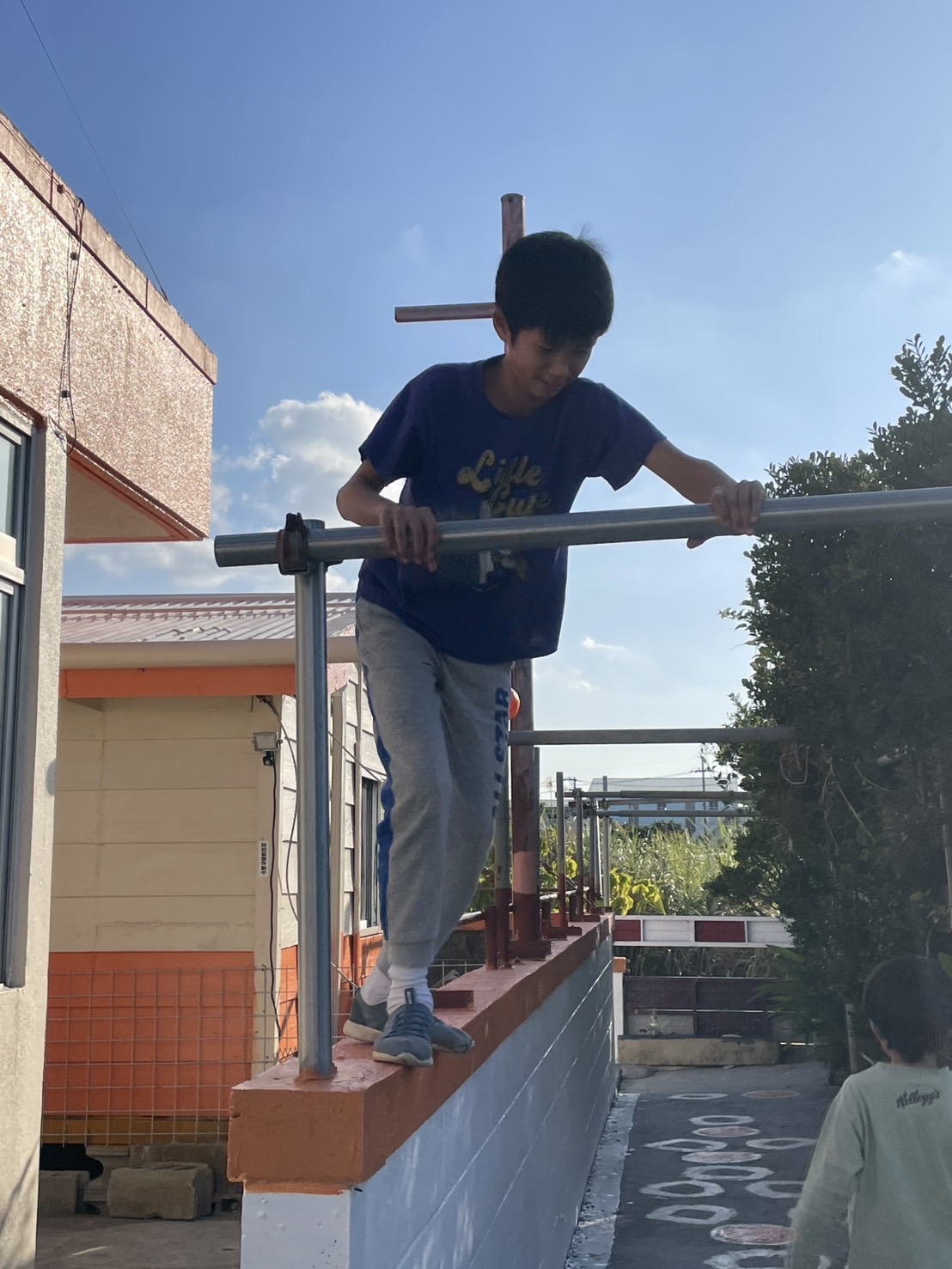 少し高さもあり、下が見えて怖いけどしっかり足場を確認しながら進んでいます👀💪