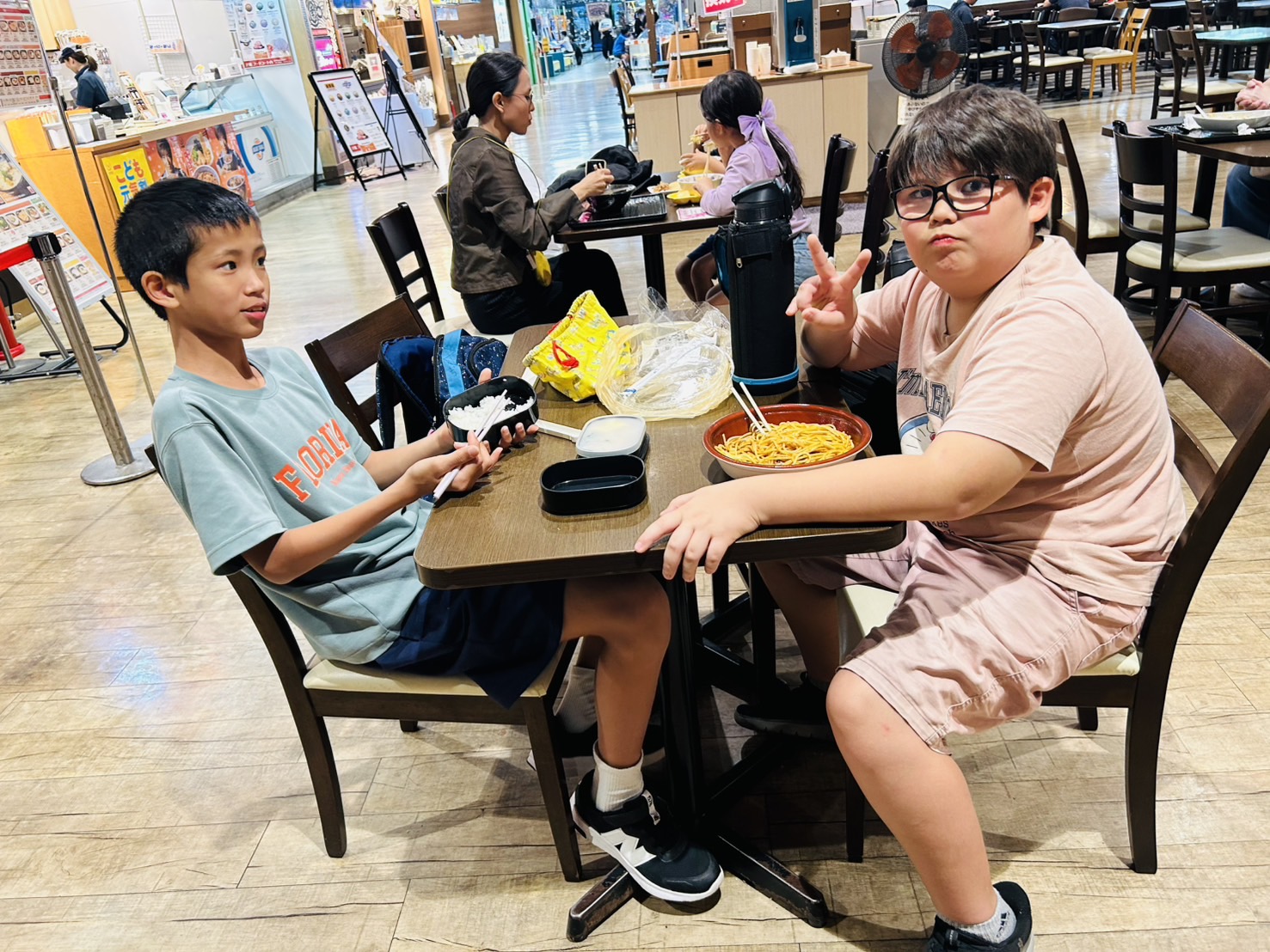 夕飯をみんなで外で食べました(^^♪🍽️🌈