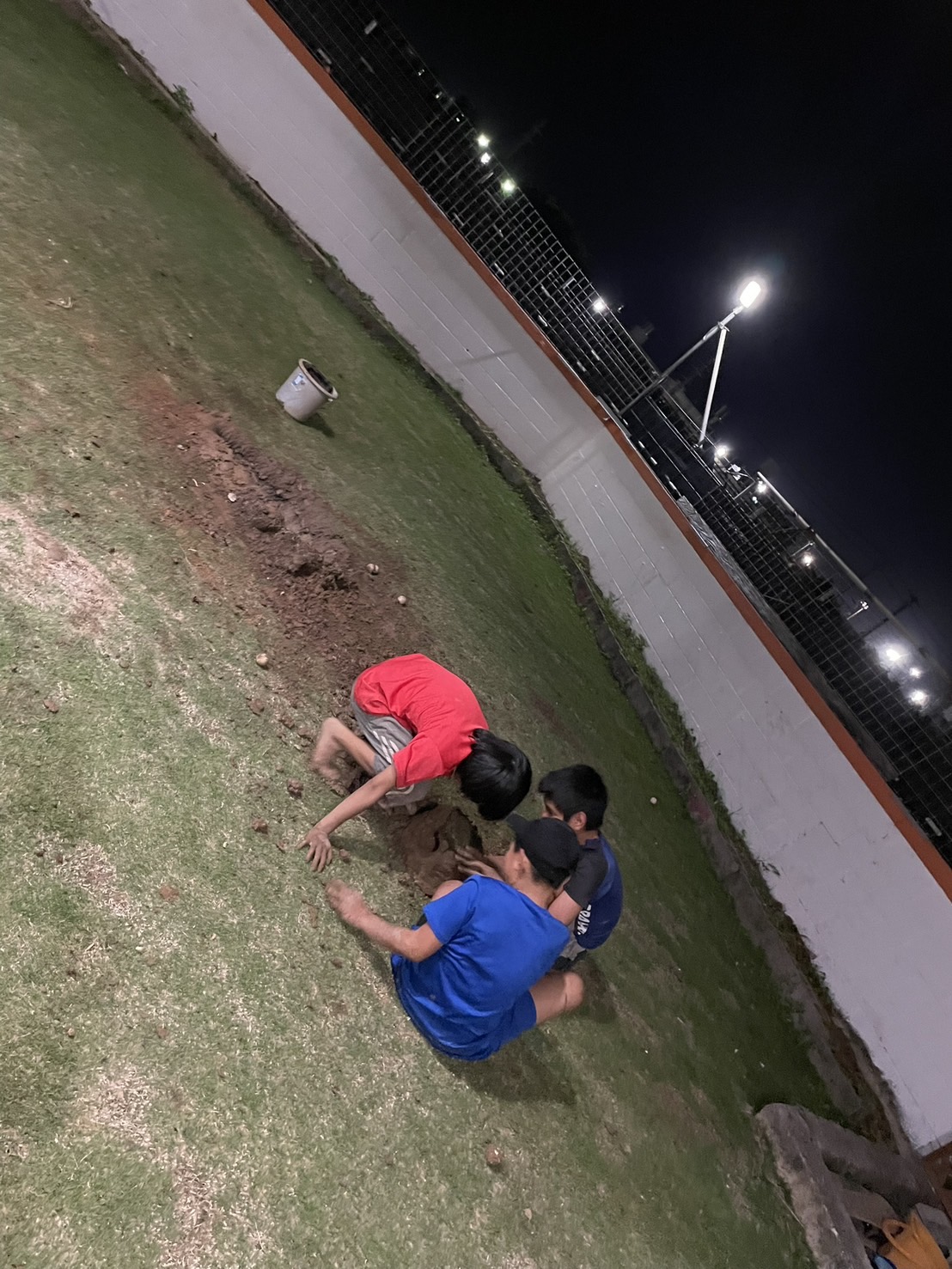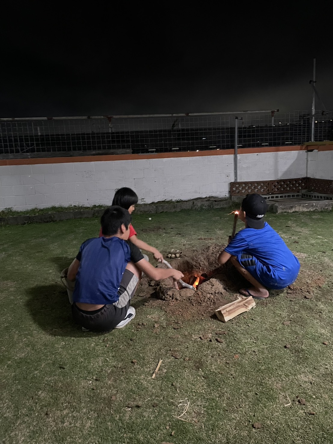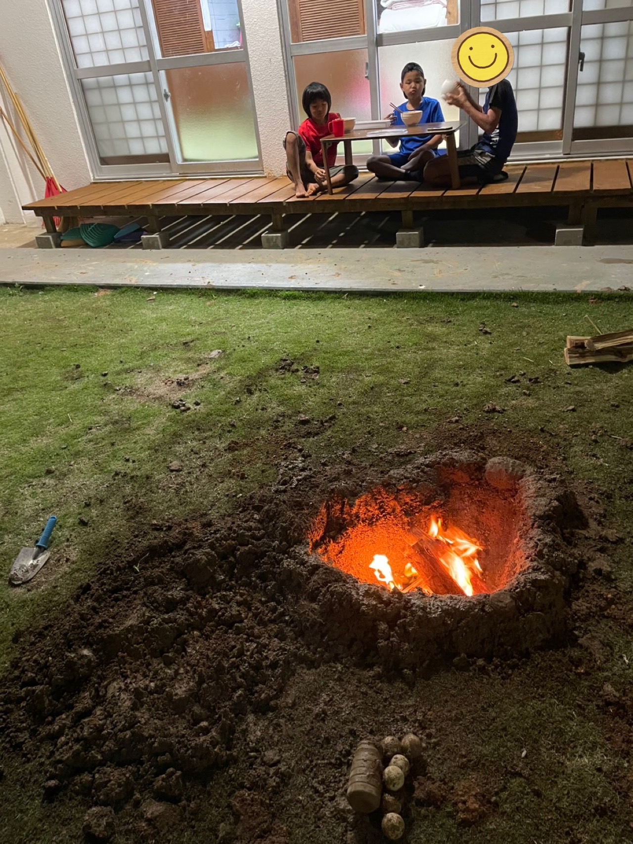 日中の汚れを綺麗にしてから掘った穴で焚き火をして🔥😊