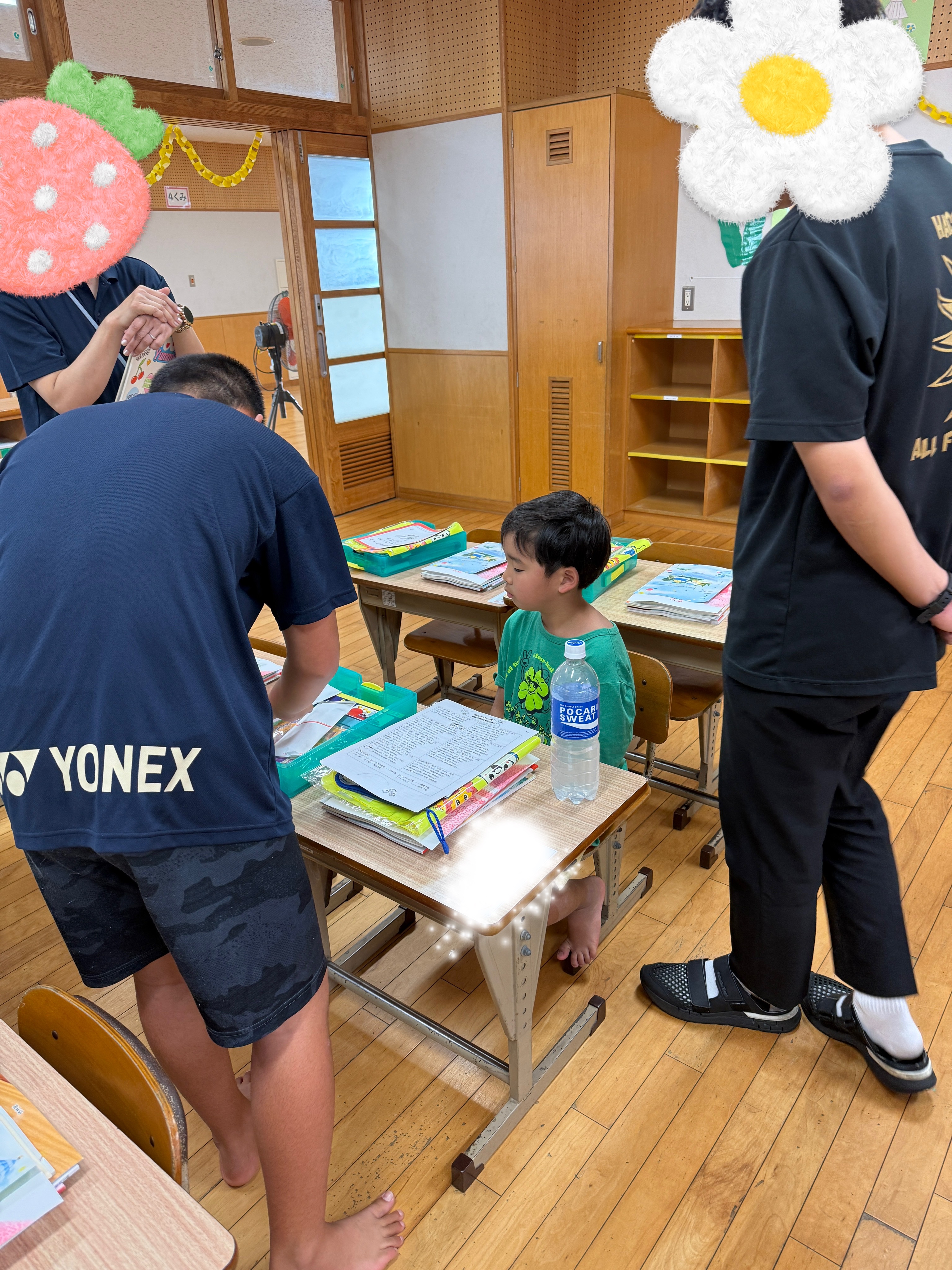 明日入学式の子も学校へ行き自分の靴を入れる場所、教室を教えてもらい式の練習もしました😊🌈