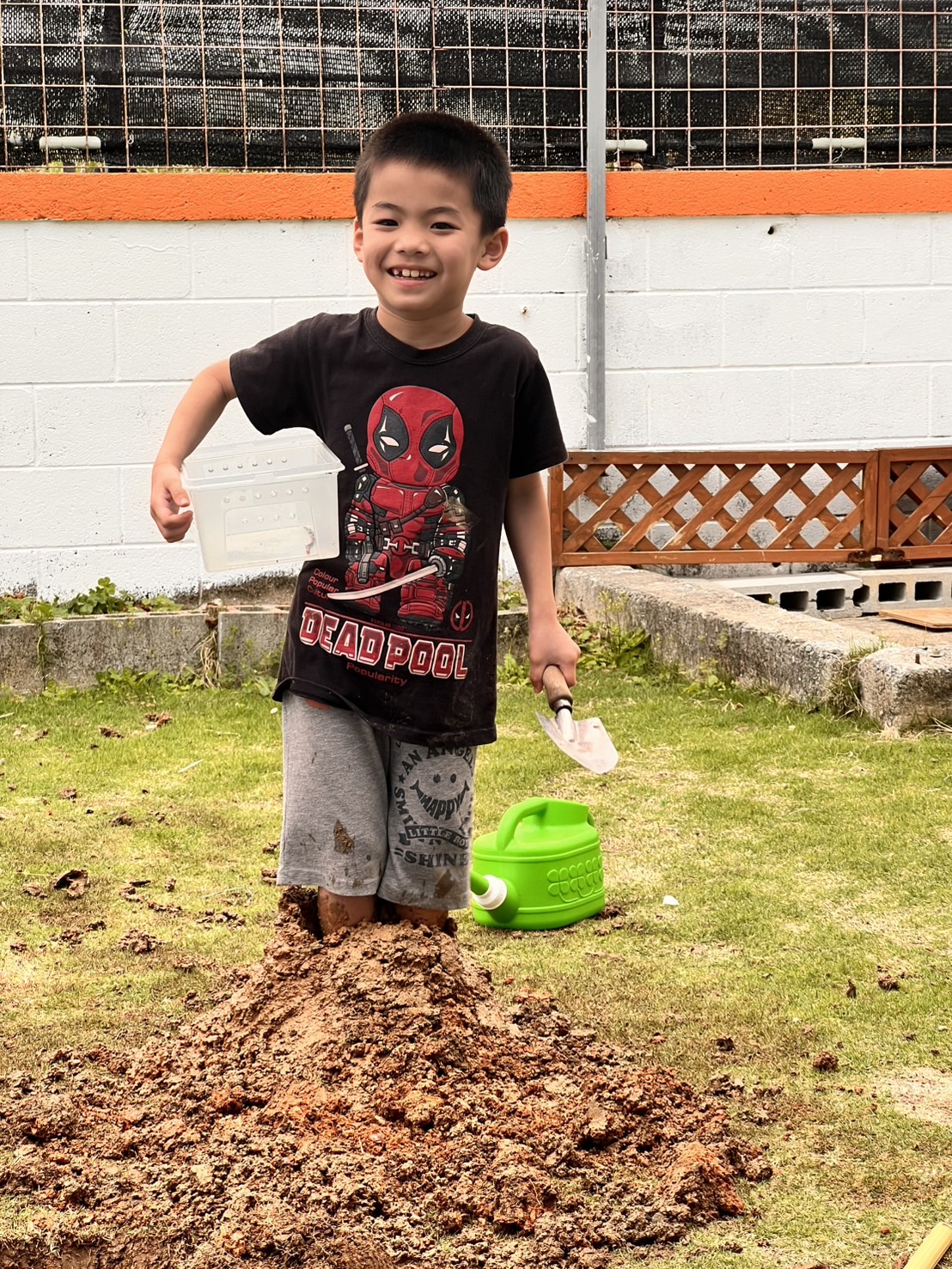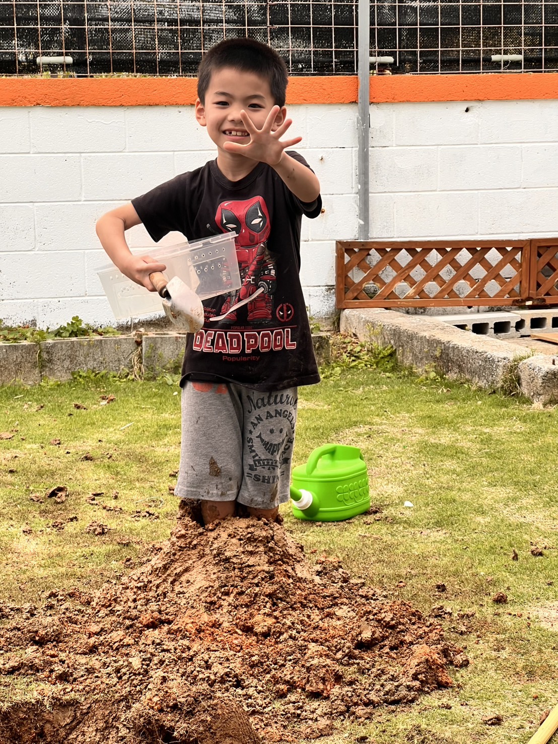 庭に穴を掘って泥だらけになりながらもとても楽しそうでした😊🌿