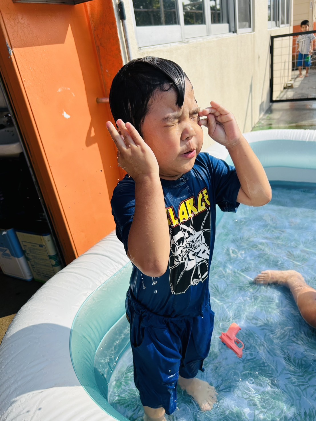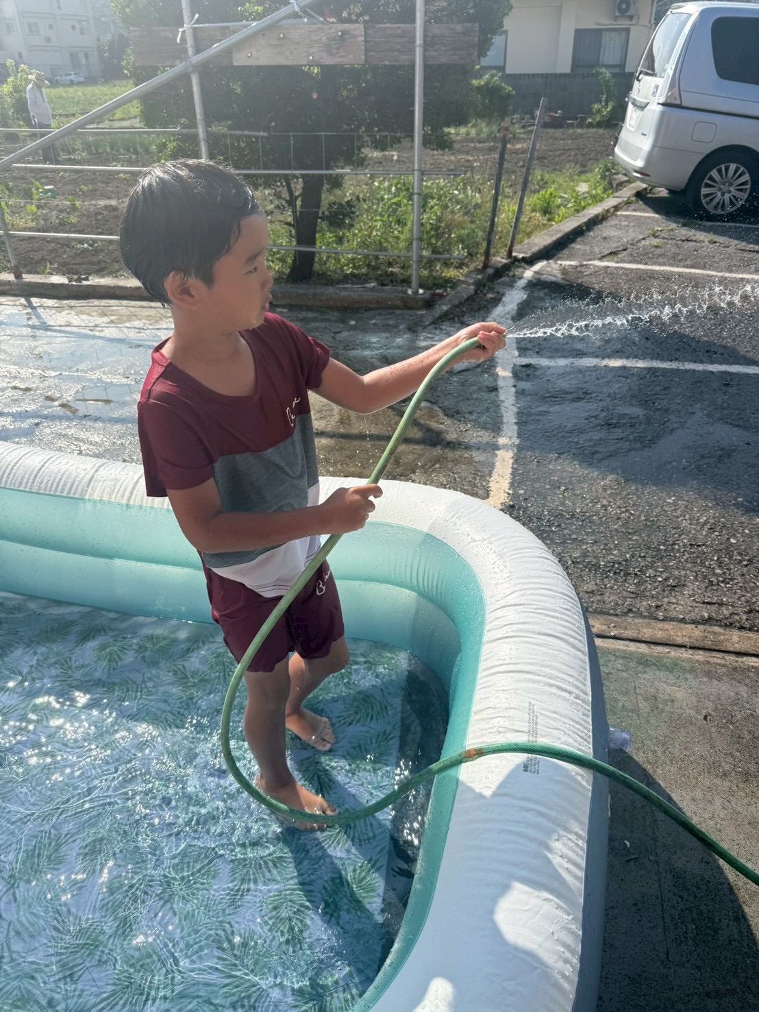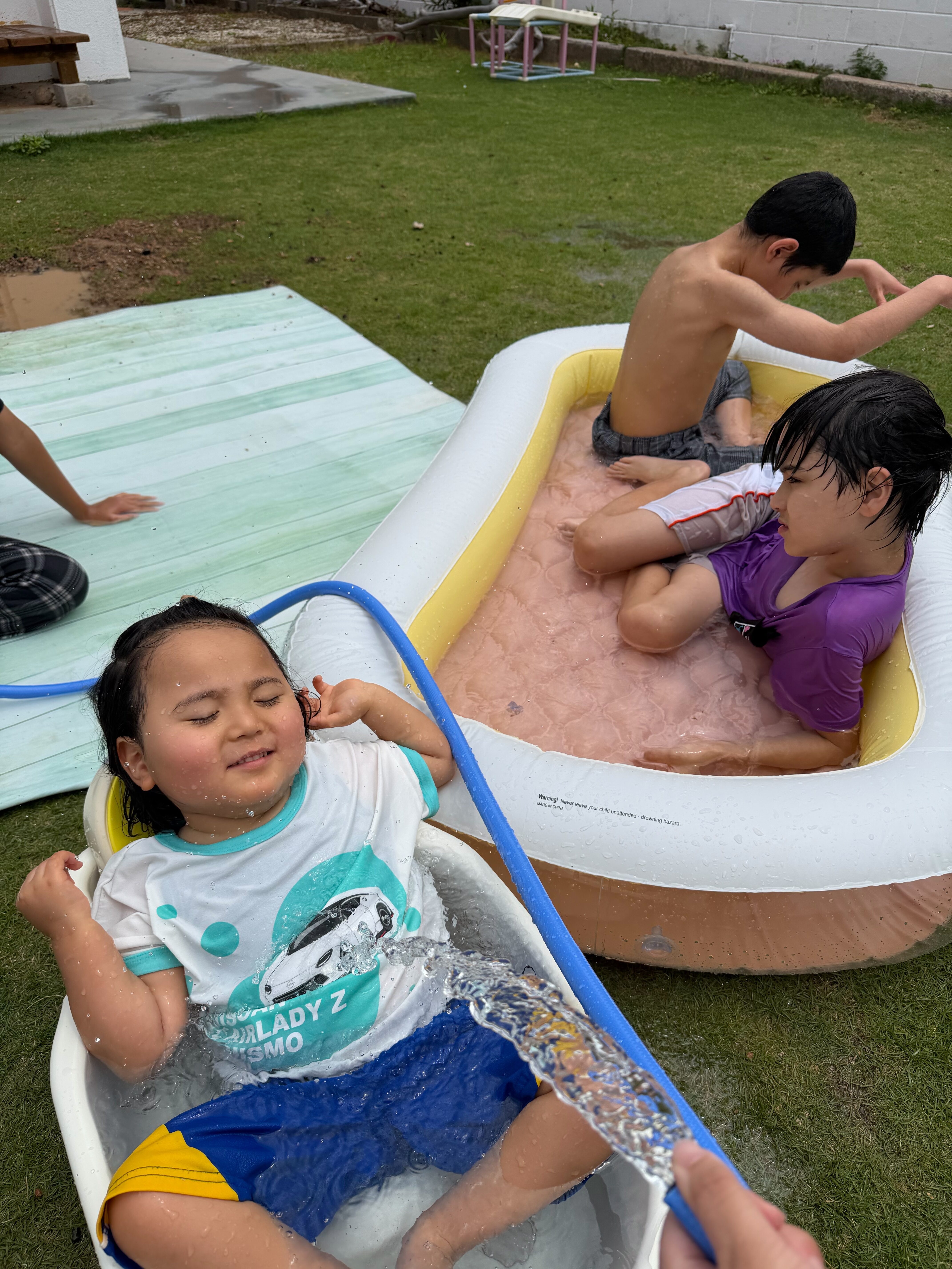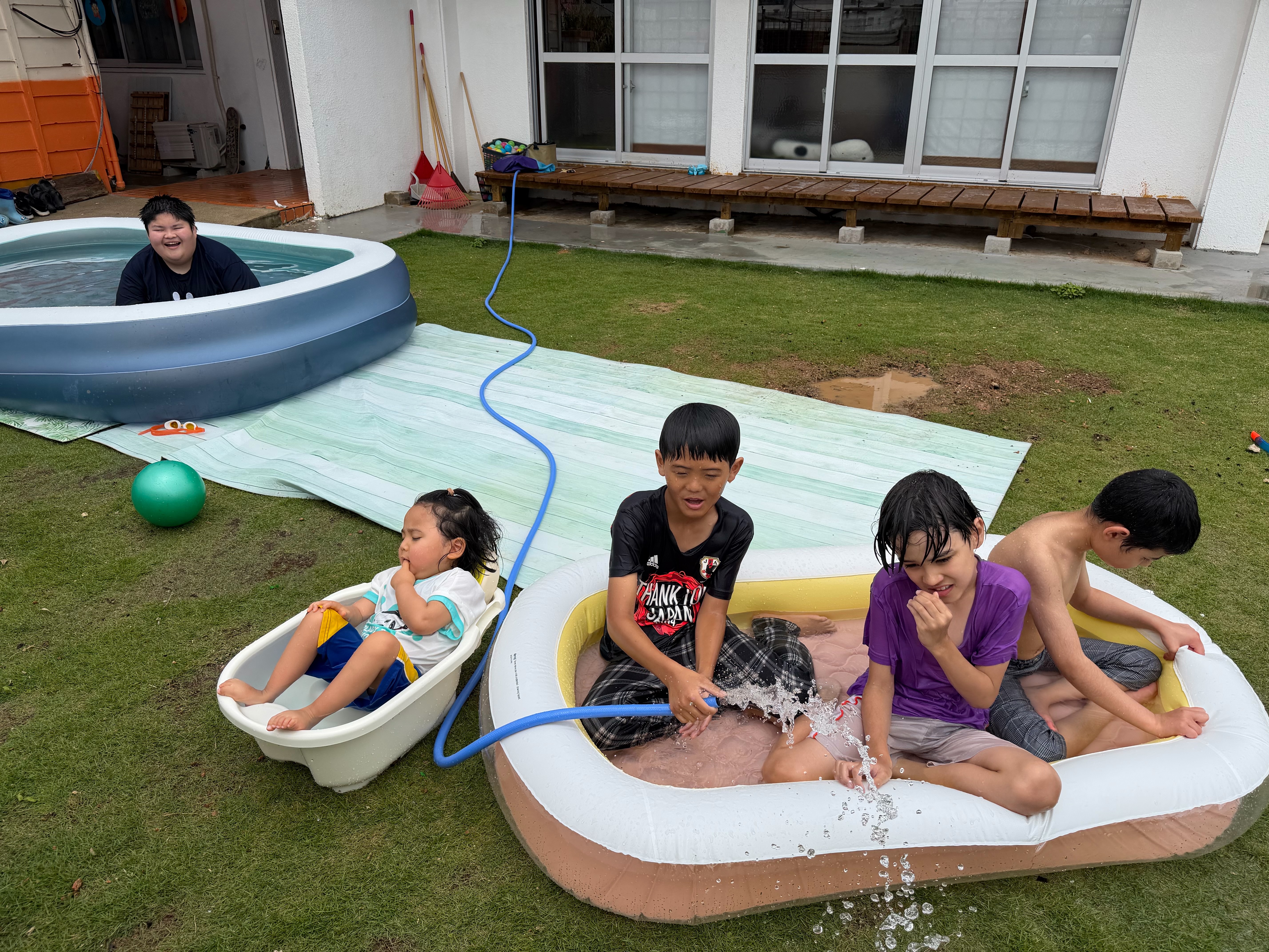 午前中は庭でプールをして遊びました🏊♂️💛