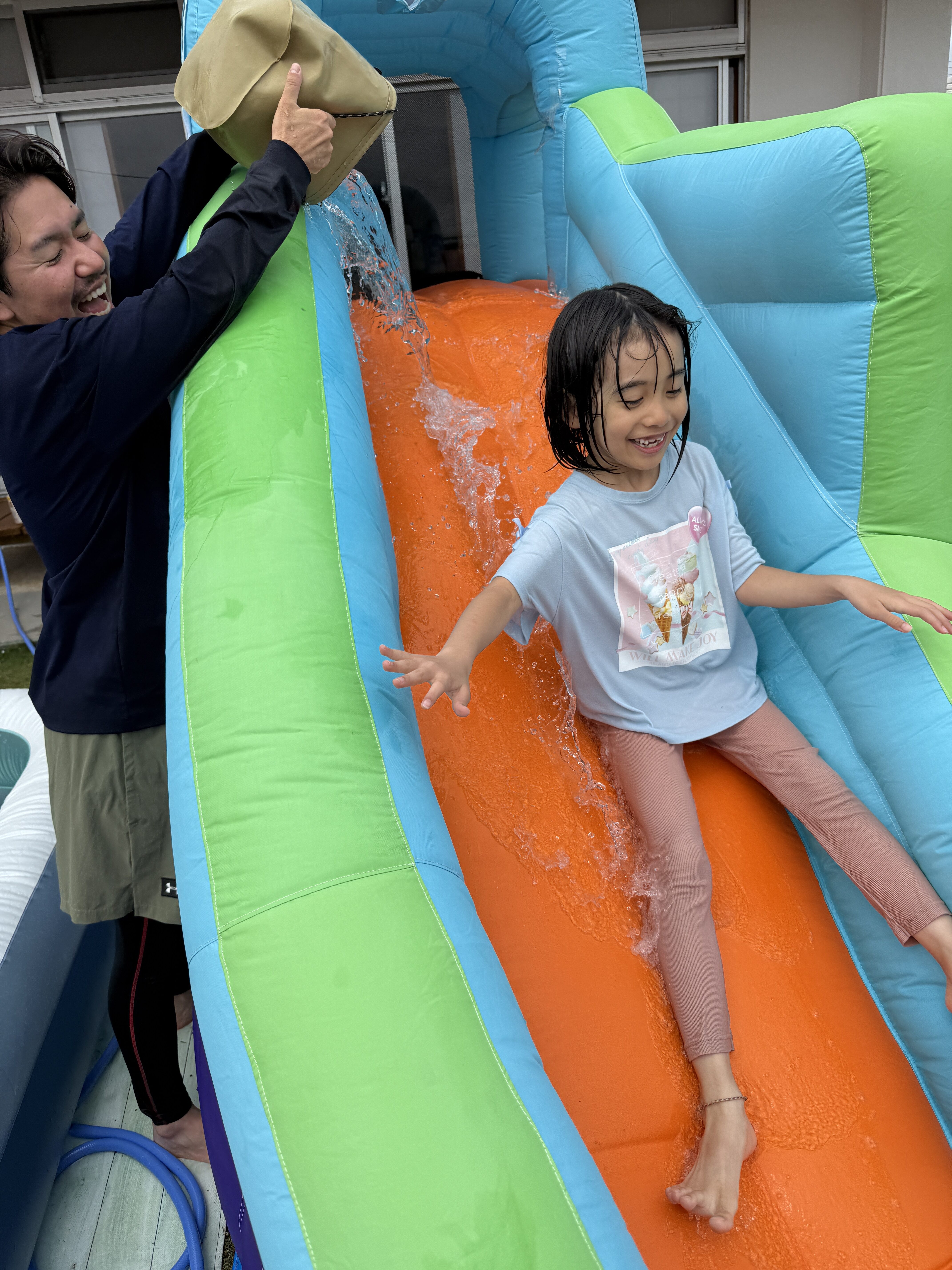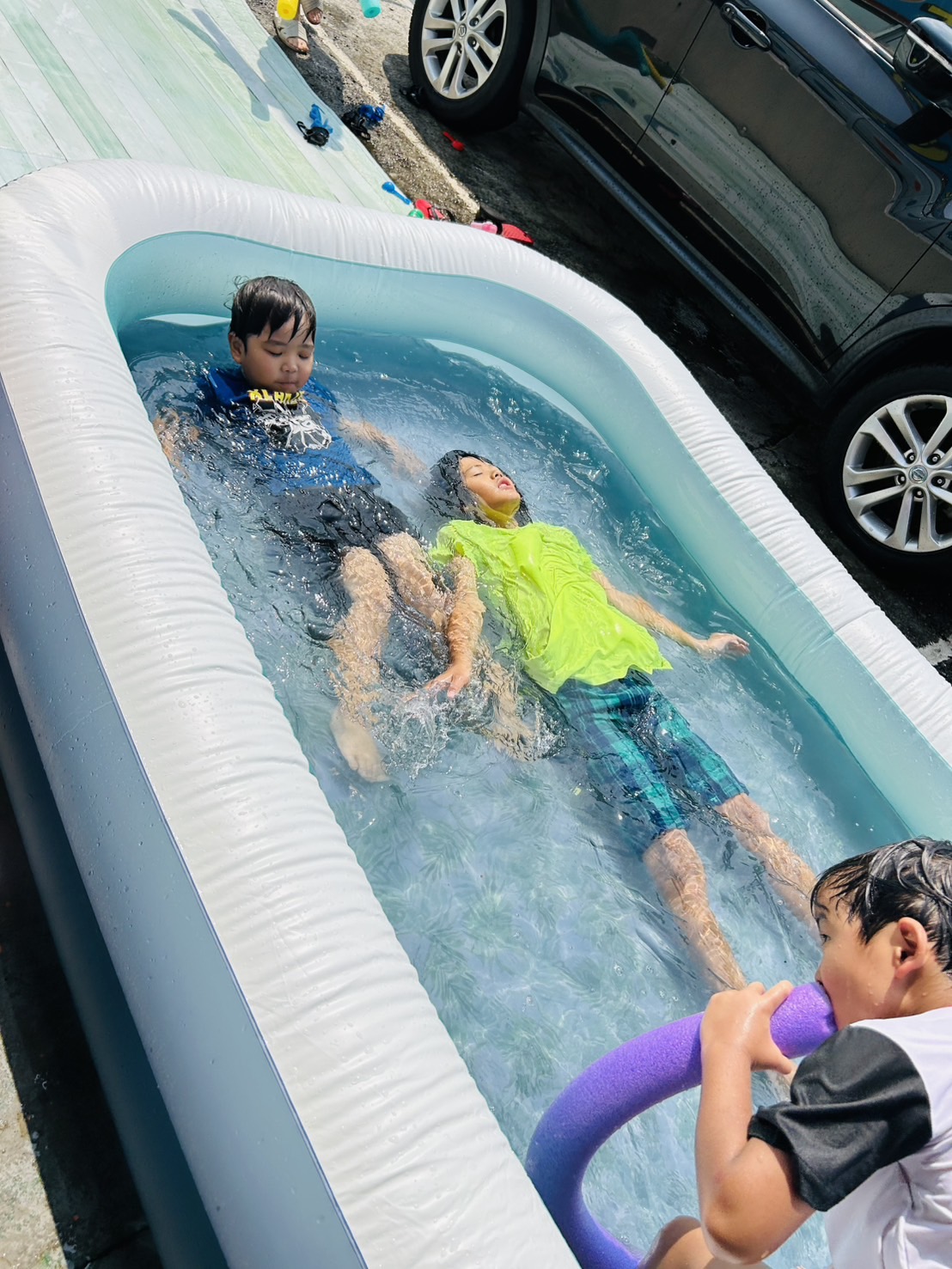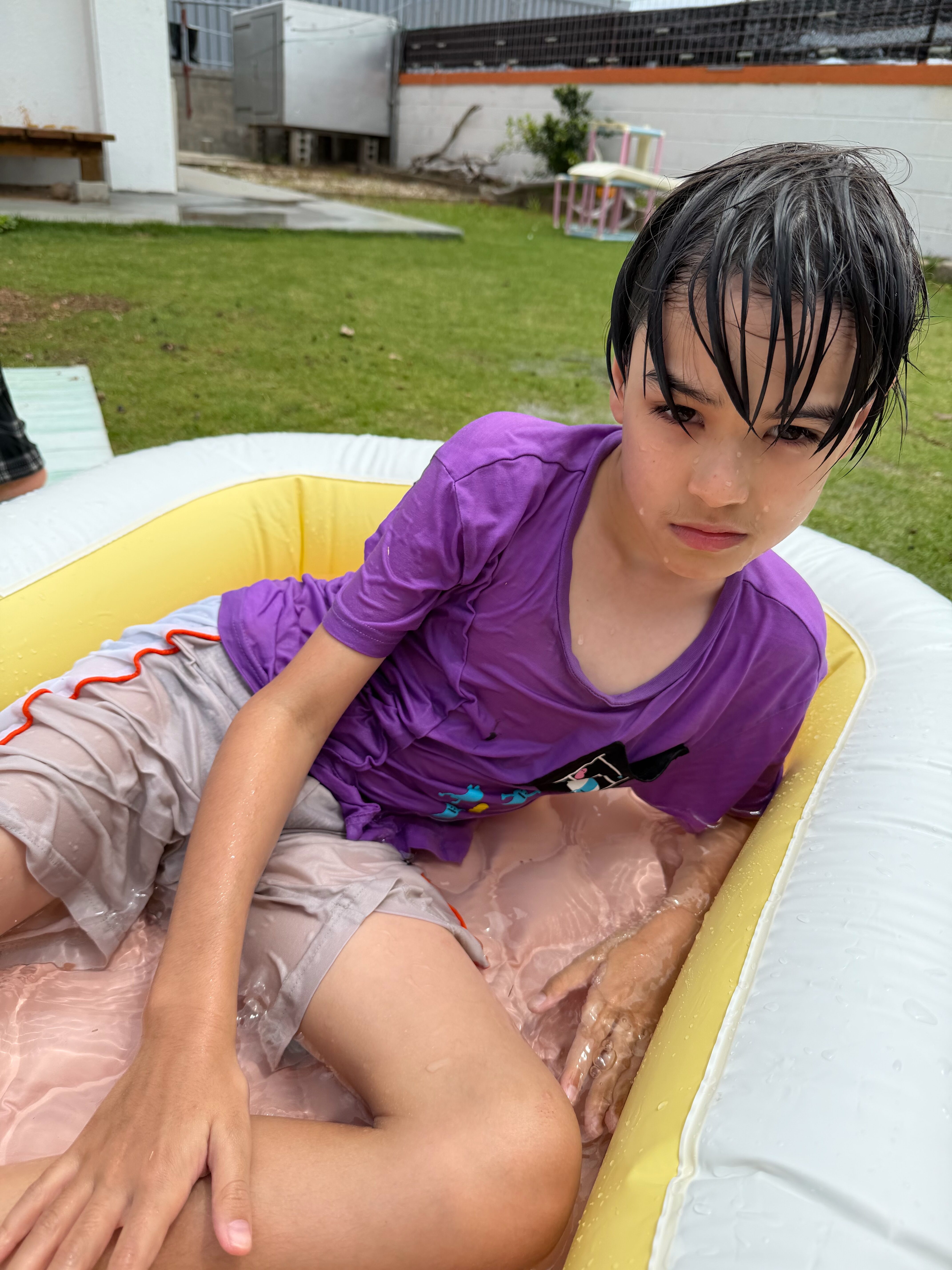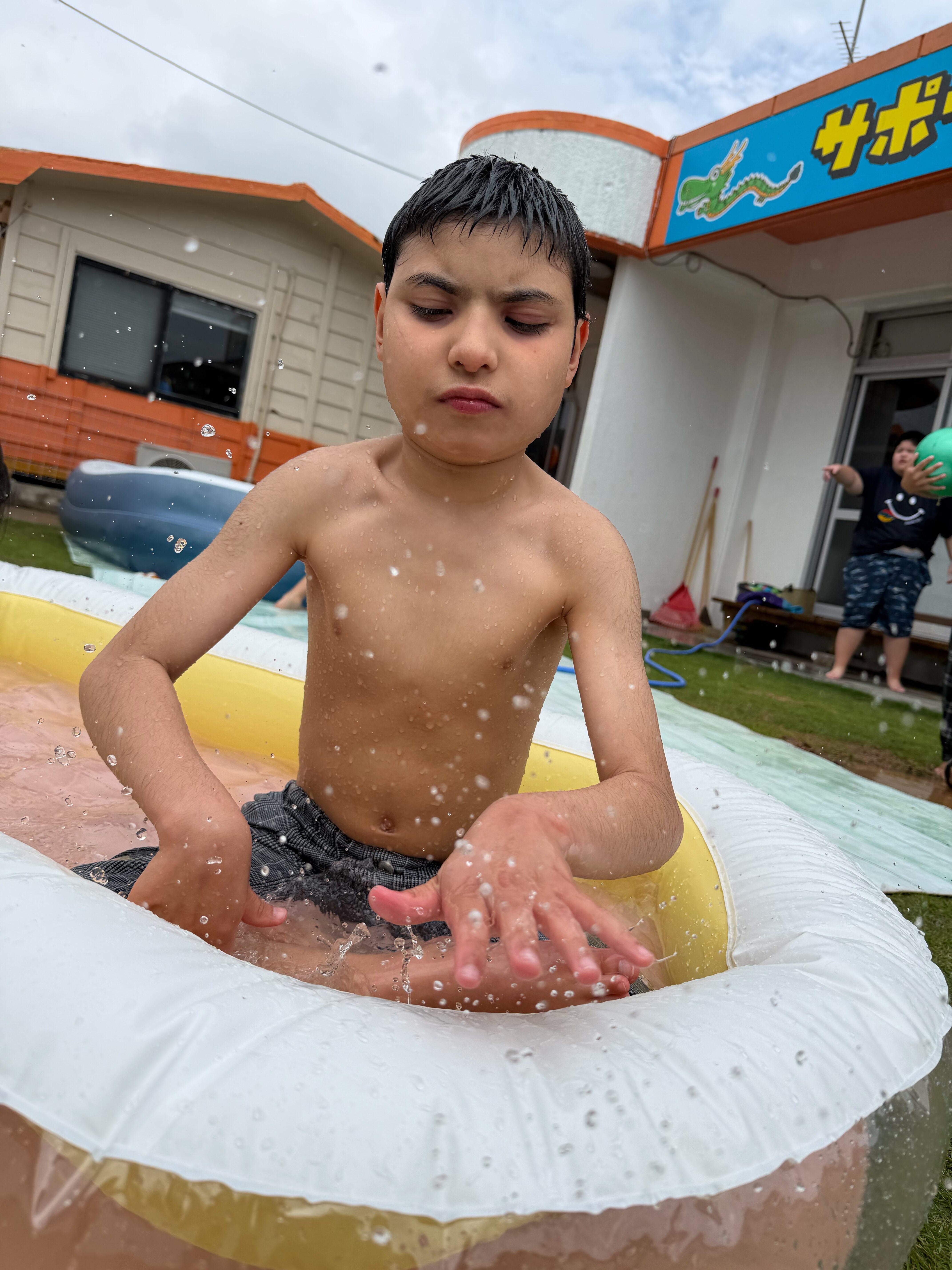 午前中は庭でプールをして遊びました🏊♂️💛