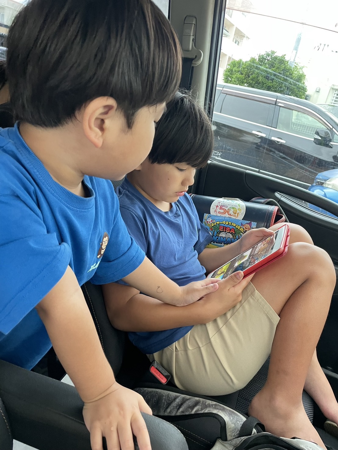 帰りの車ではタブレットに興味津々📱✨