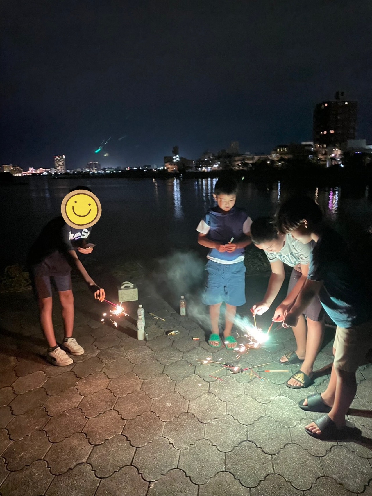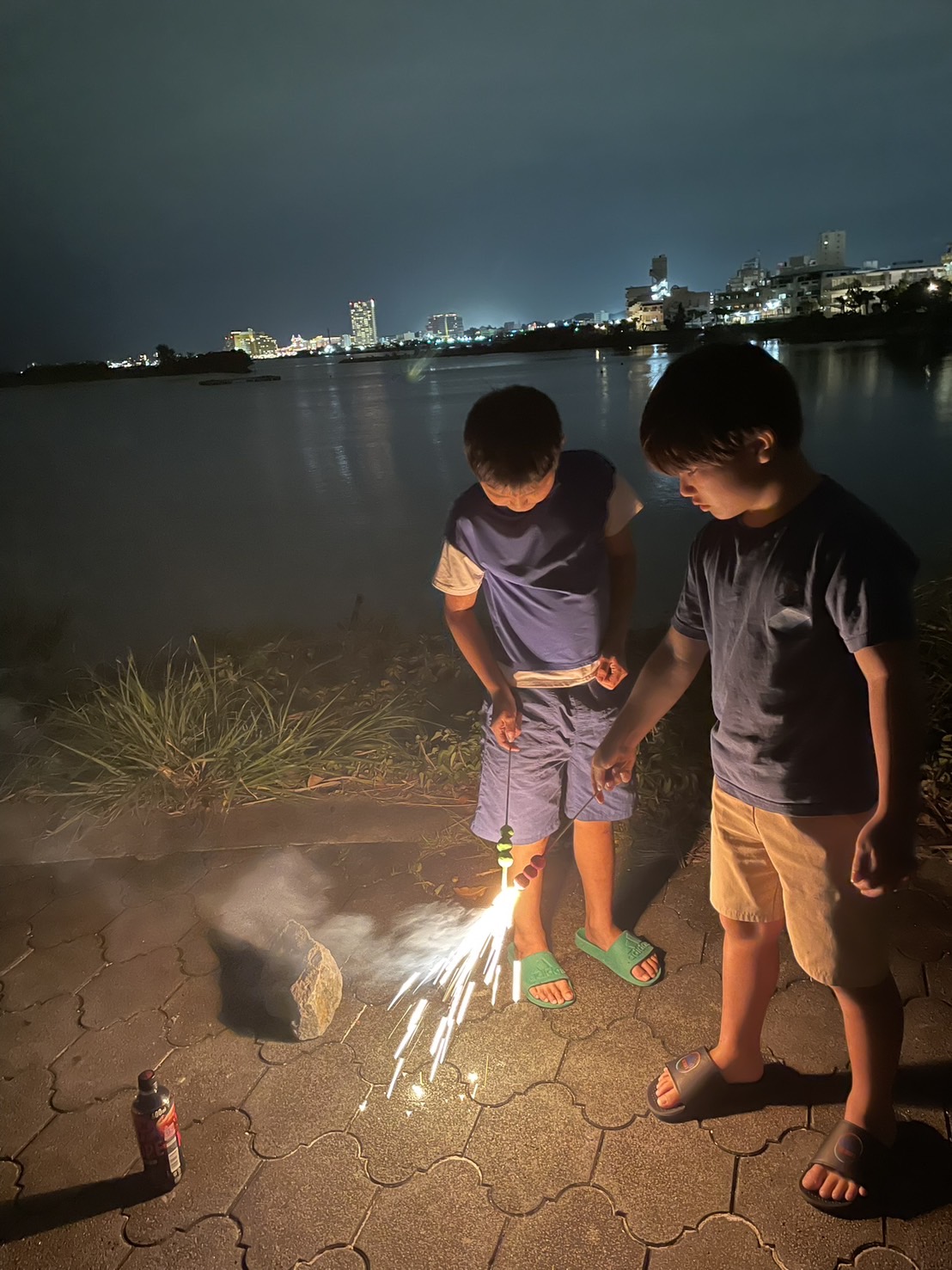 ロケット花火に火をつけるのに苦戦していたようです(笑)😂🌈