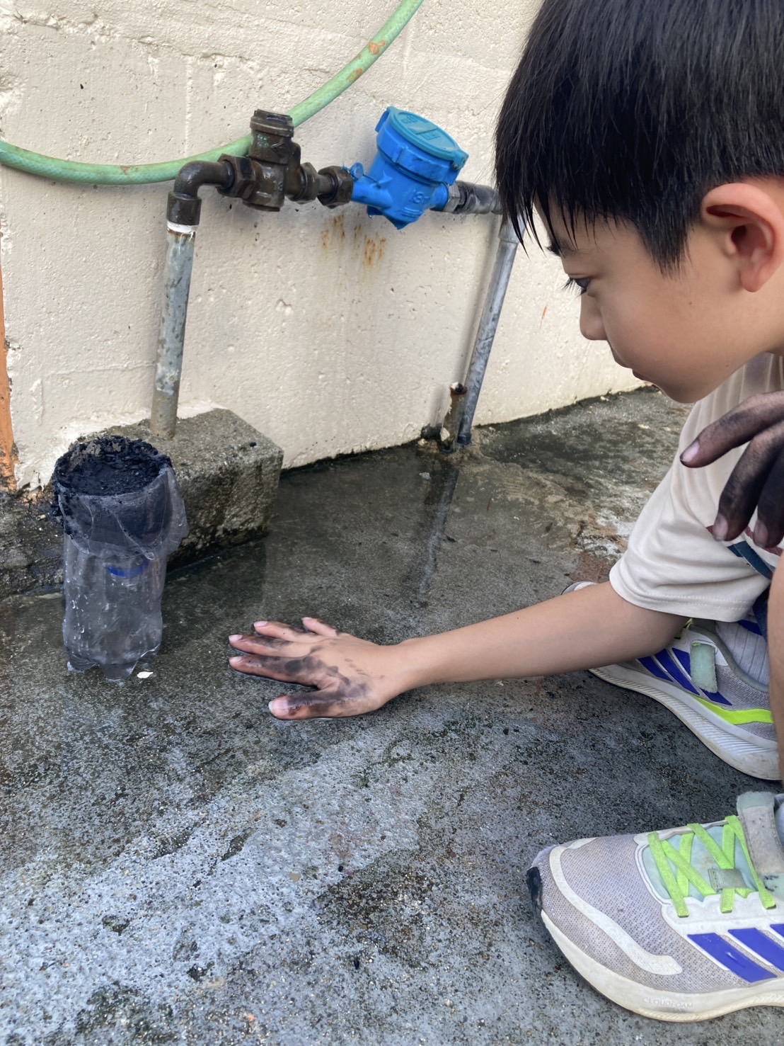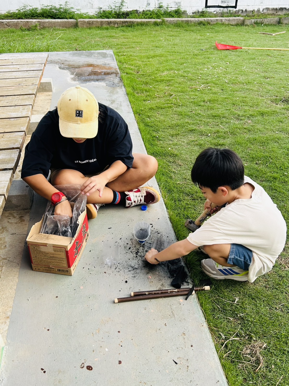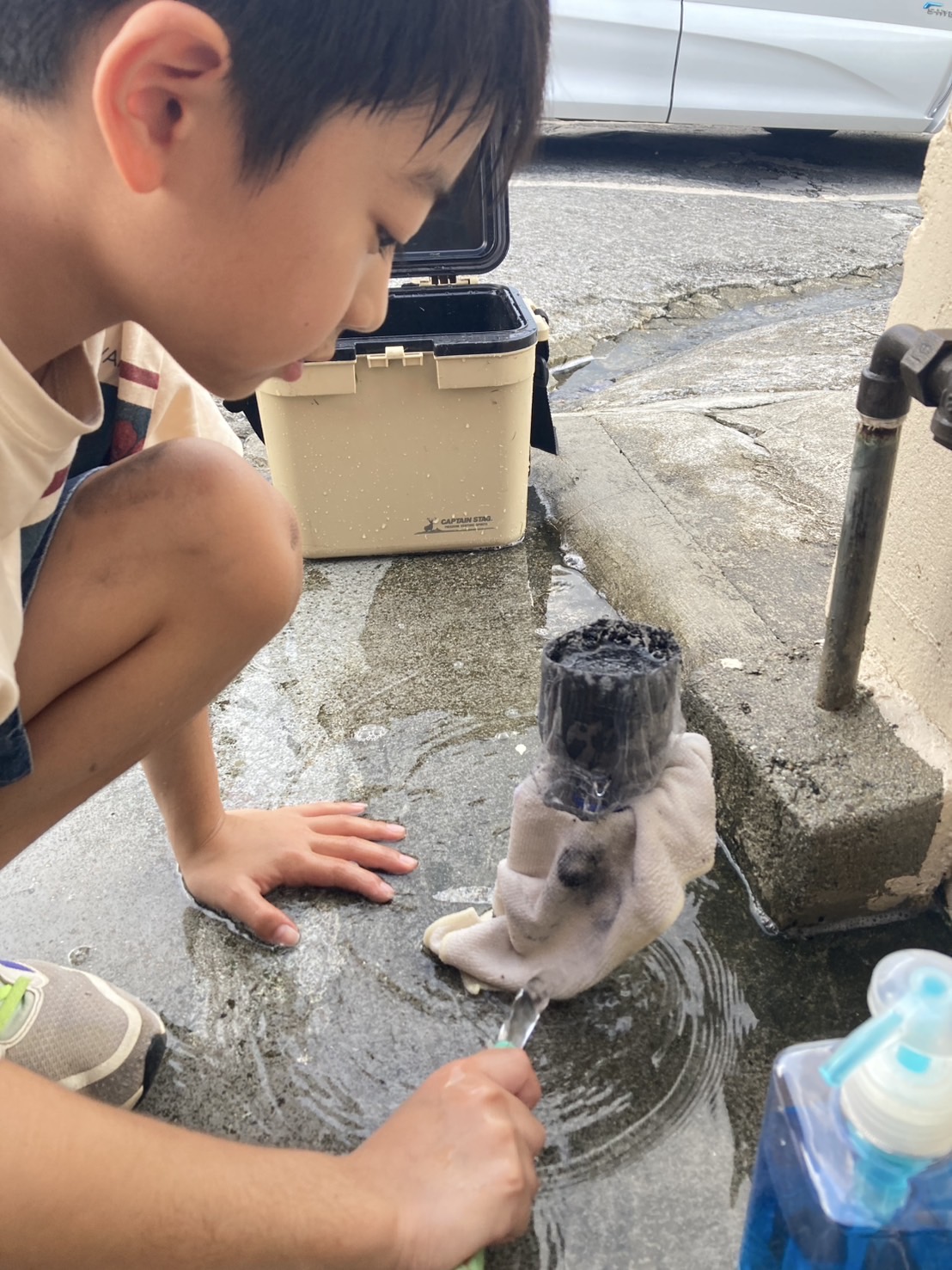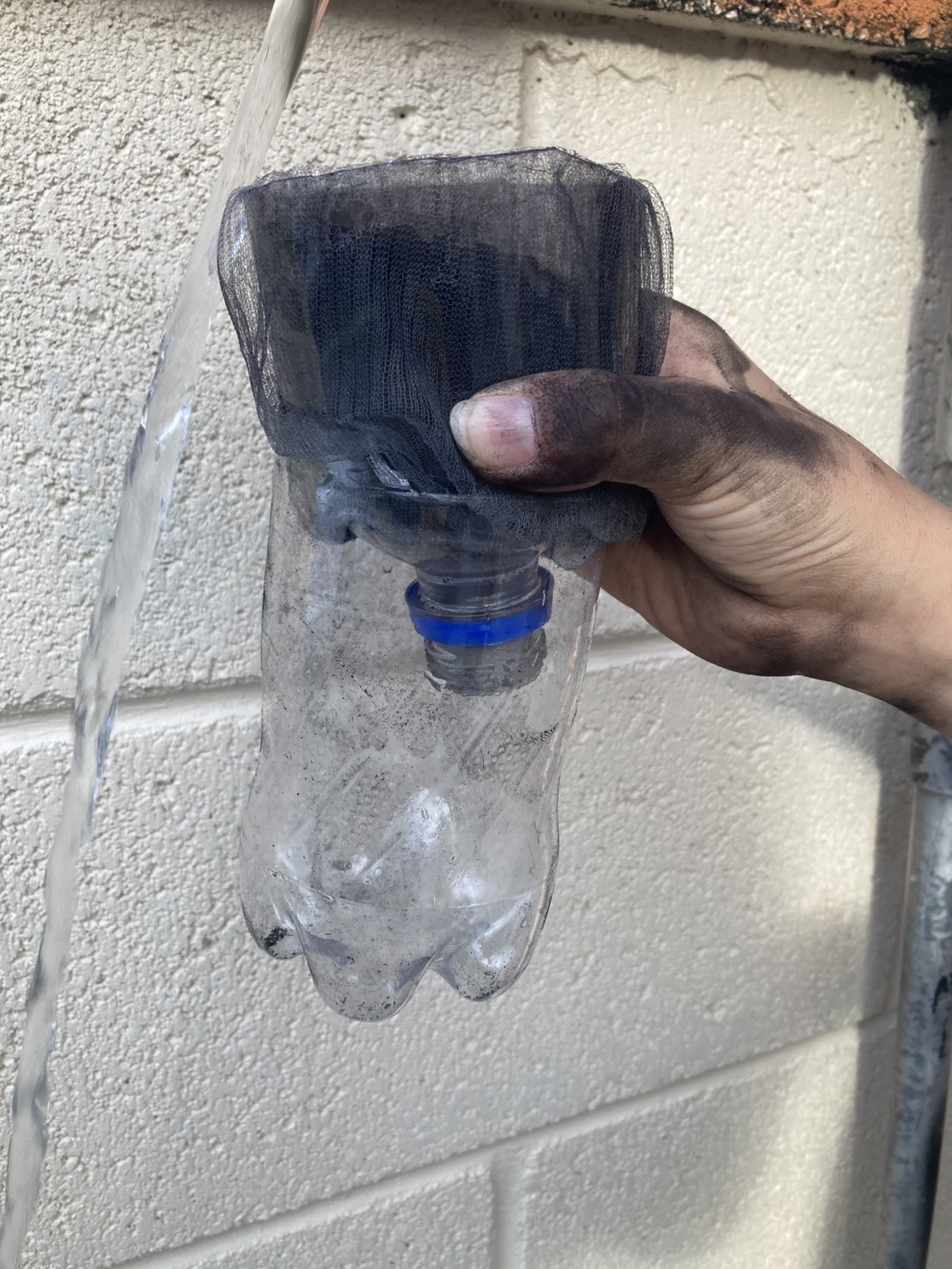 アジトでは代表と一緒に炭を砕いてろ過装置を作成🧪✨