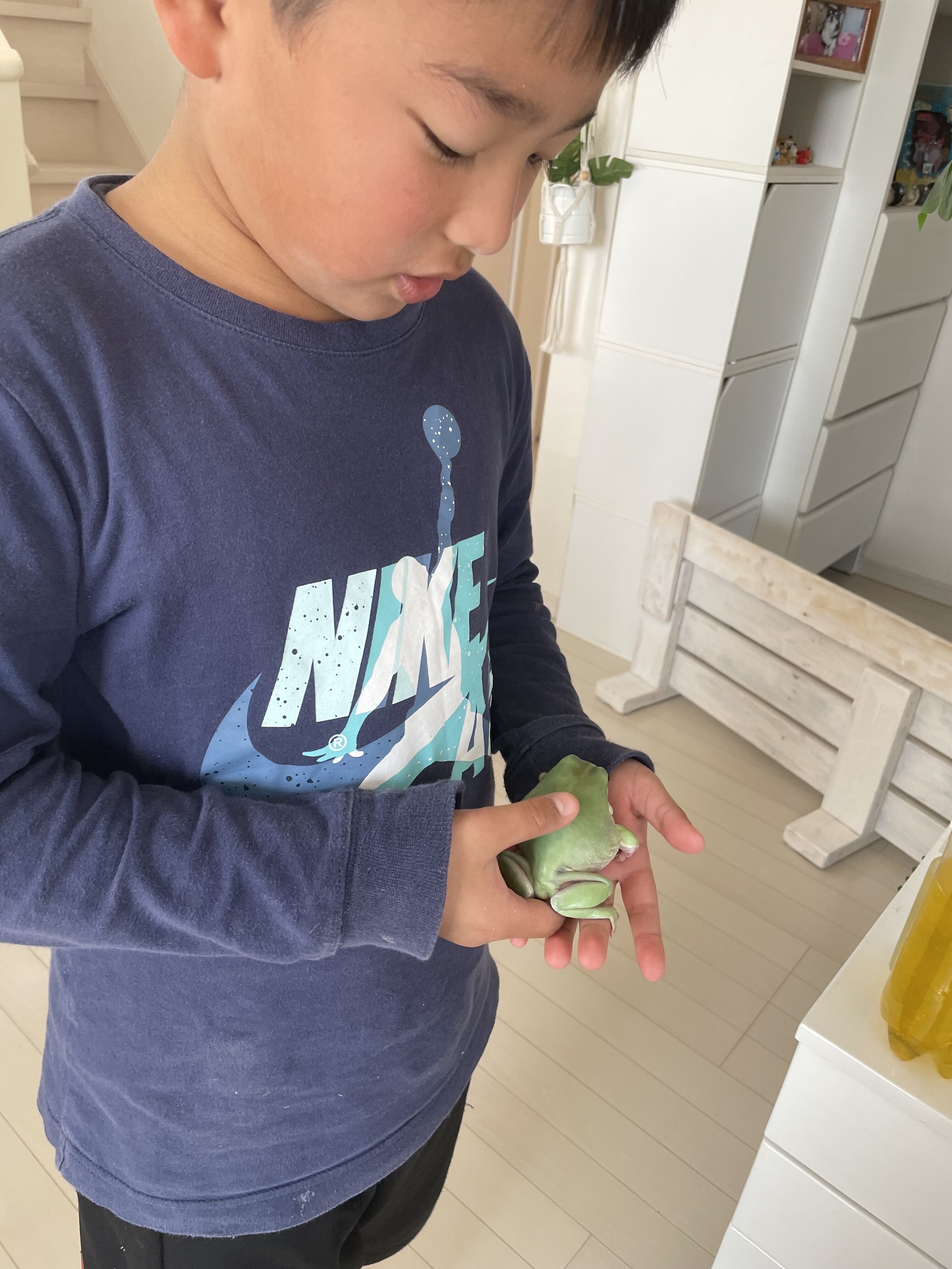今日帰る子はカエルやカメレオンと遊んだり釣りしたり外で活動🐸🦎