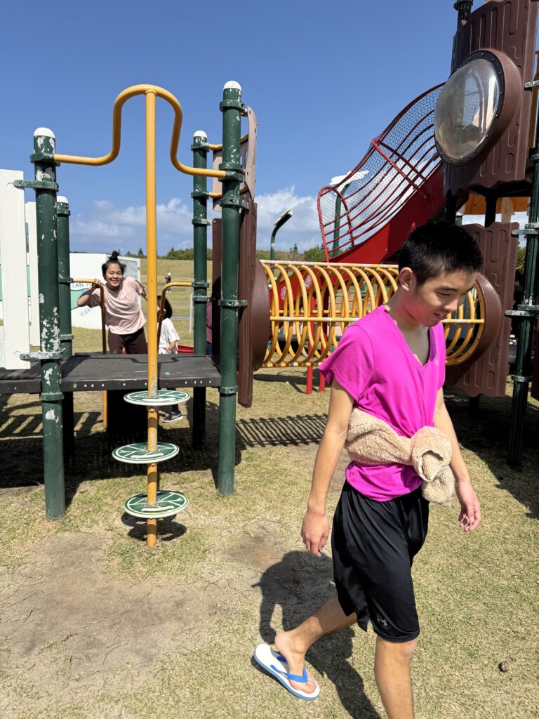 遊具で遊んでいる時、前方に中々進めない女の子がいましたが、無理に通ろうとせず、きちんと待つことができました😊👏✨
