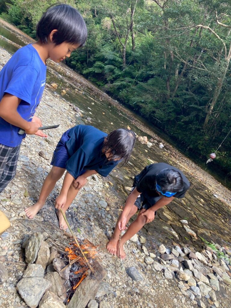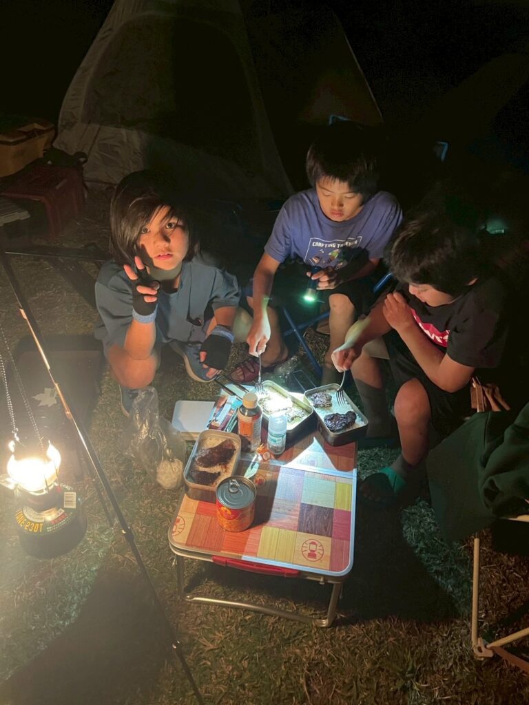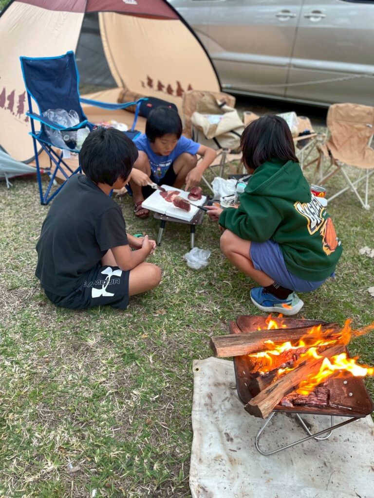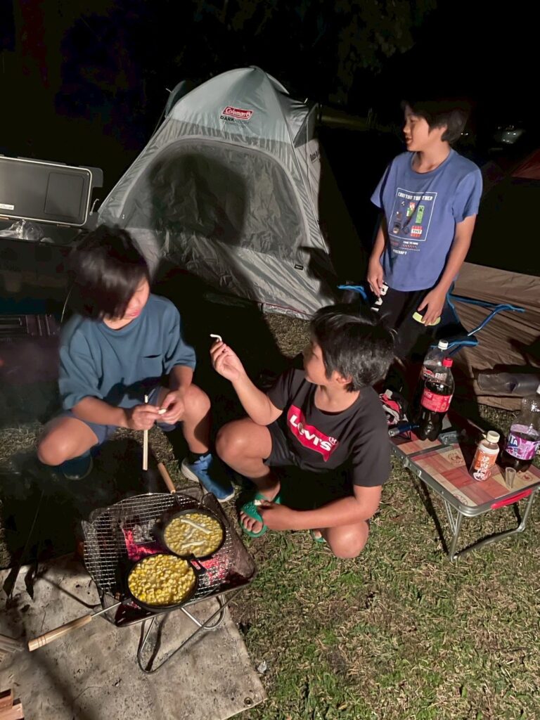 キャンプ組は荷物の準備、買い物、火起こしから料理の味付けまで3人で一緒に行動しました🎒🔥🍳