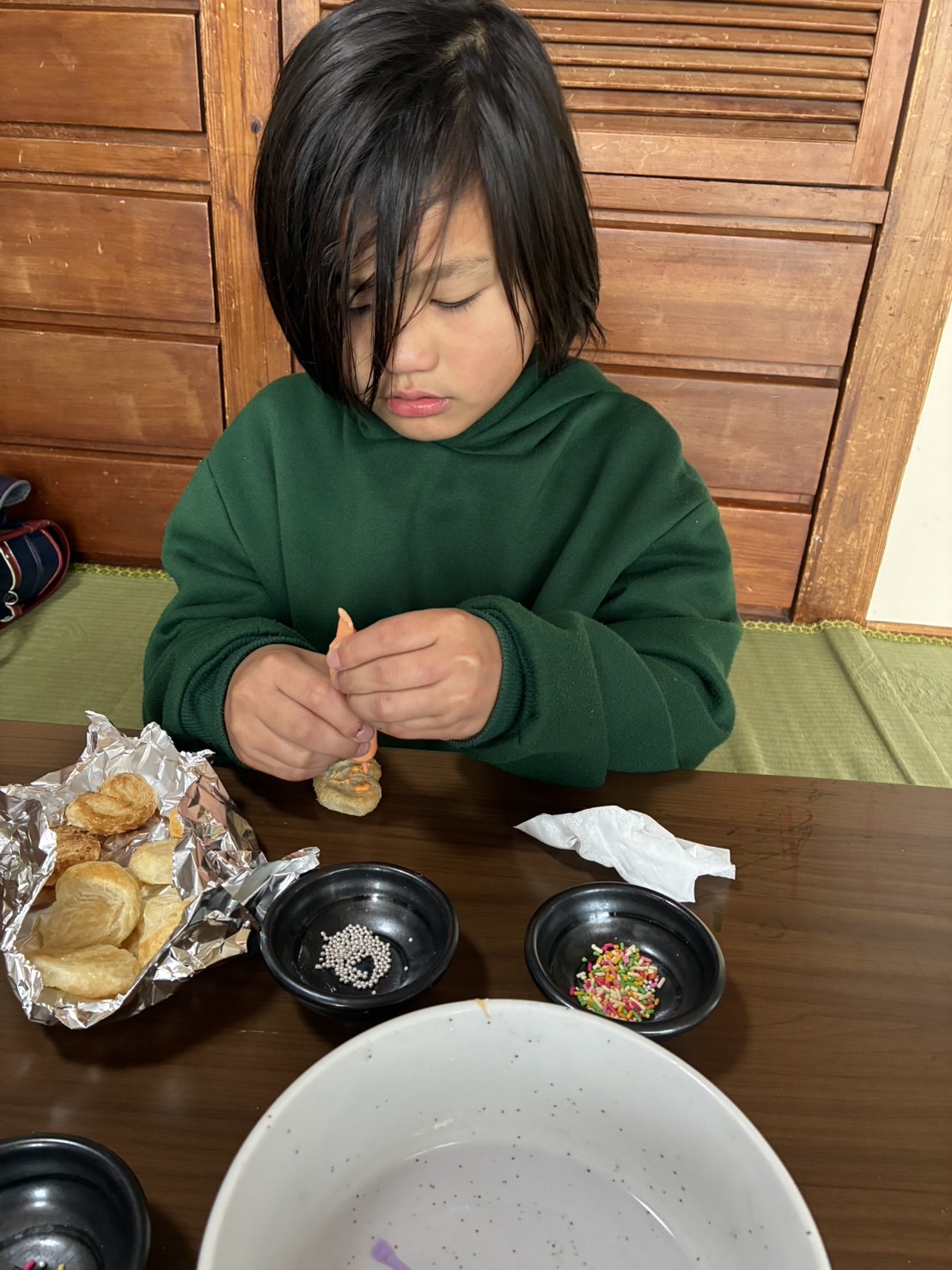 おやつ作り。みんな自由にデコレーションしてお菓子を作りました🍪🎂✨