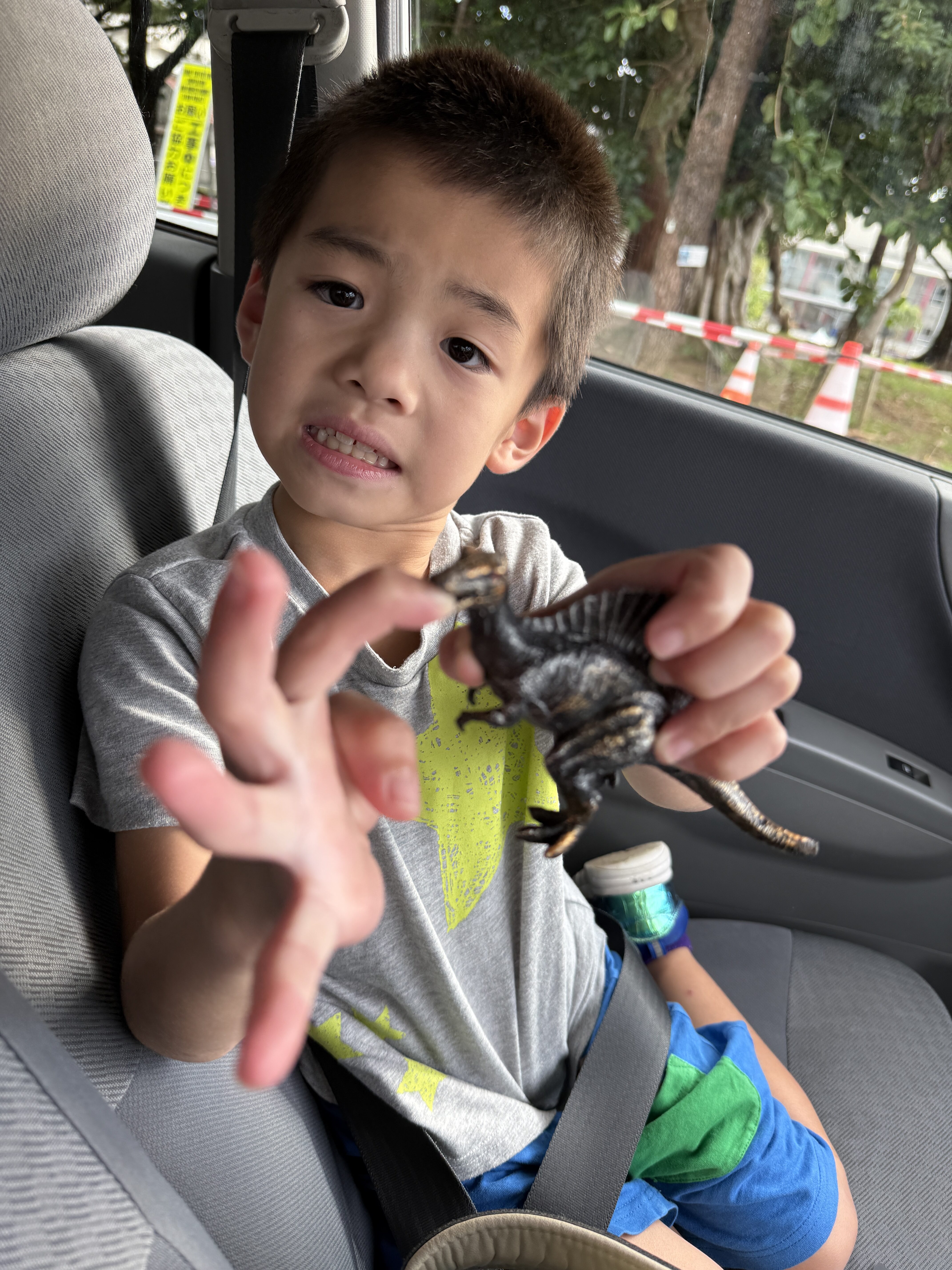 お迎え中、怪獣のおもちゃで一緒に遊んでいました🦖💫