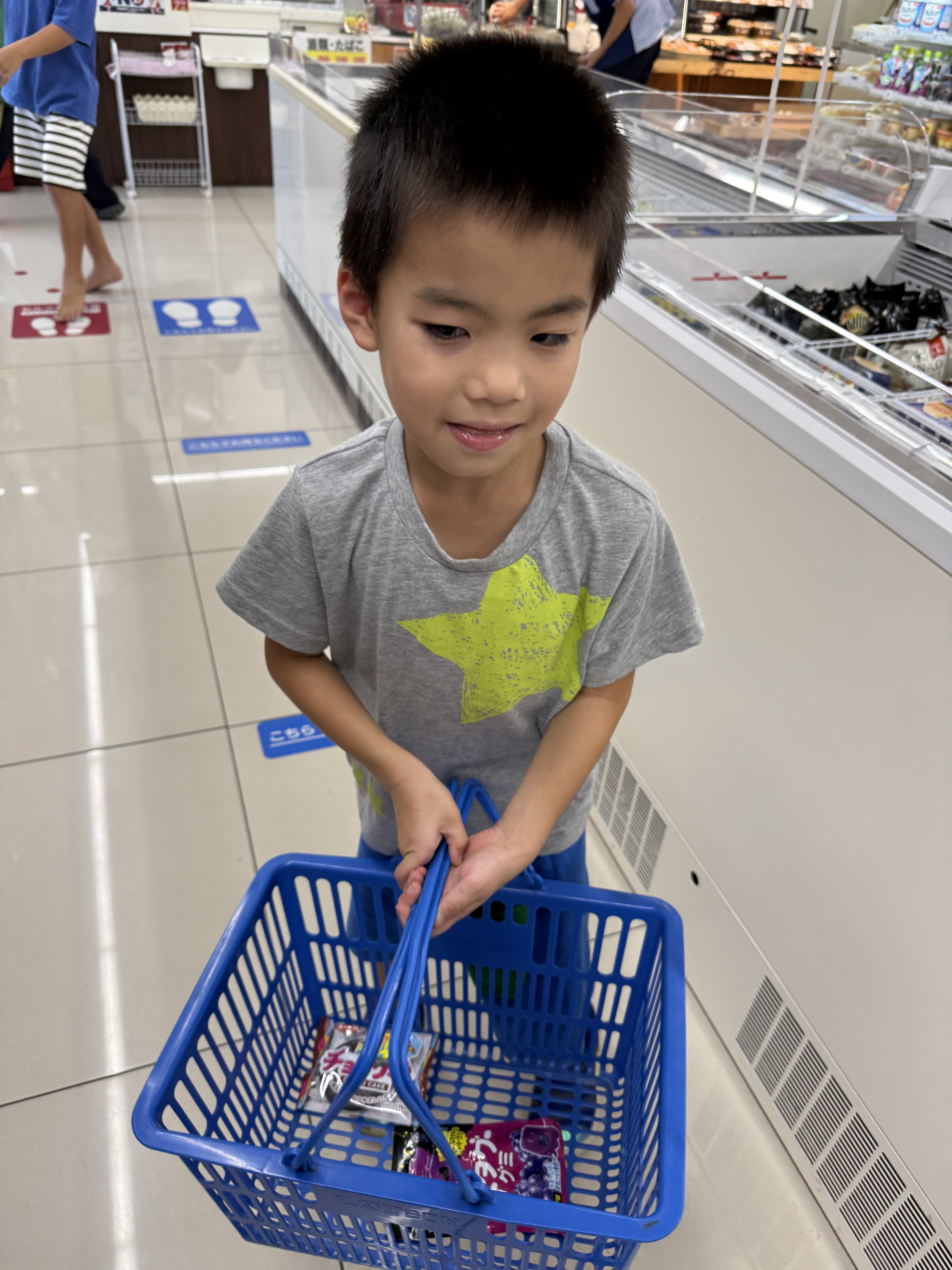 おやつも買いに行き🍩自分でかごを持って🧺レジまで持っていきました✨