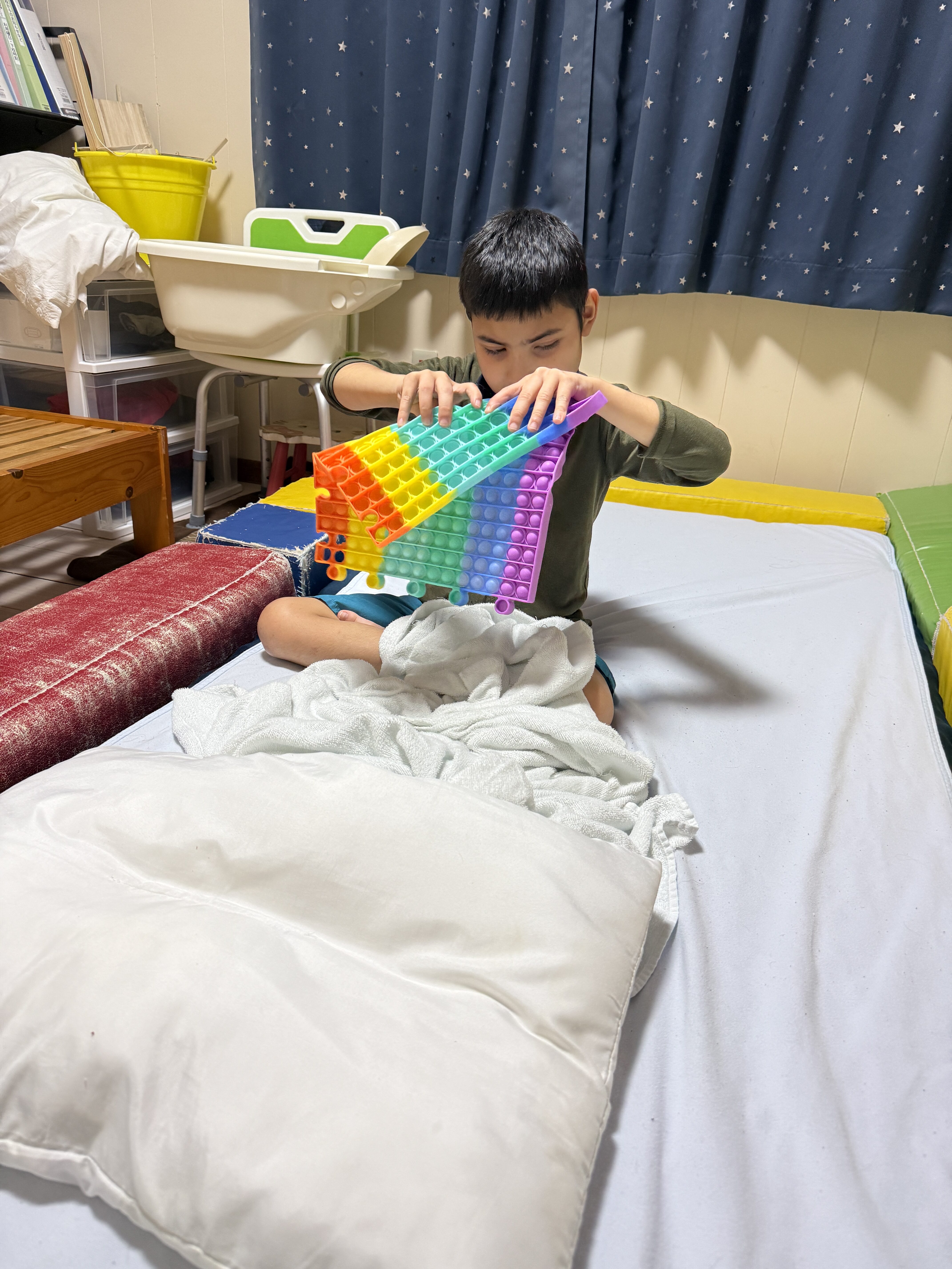 弾む感覚が好きな子は少し厚めのマットで就寝です😴💤