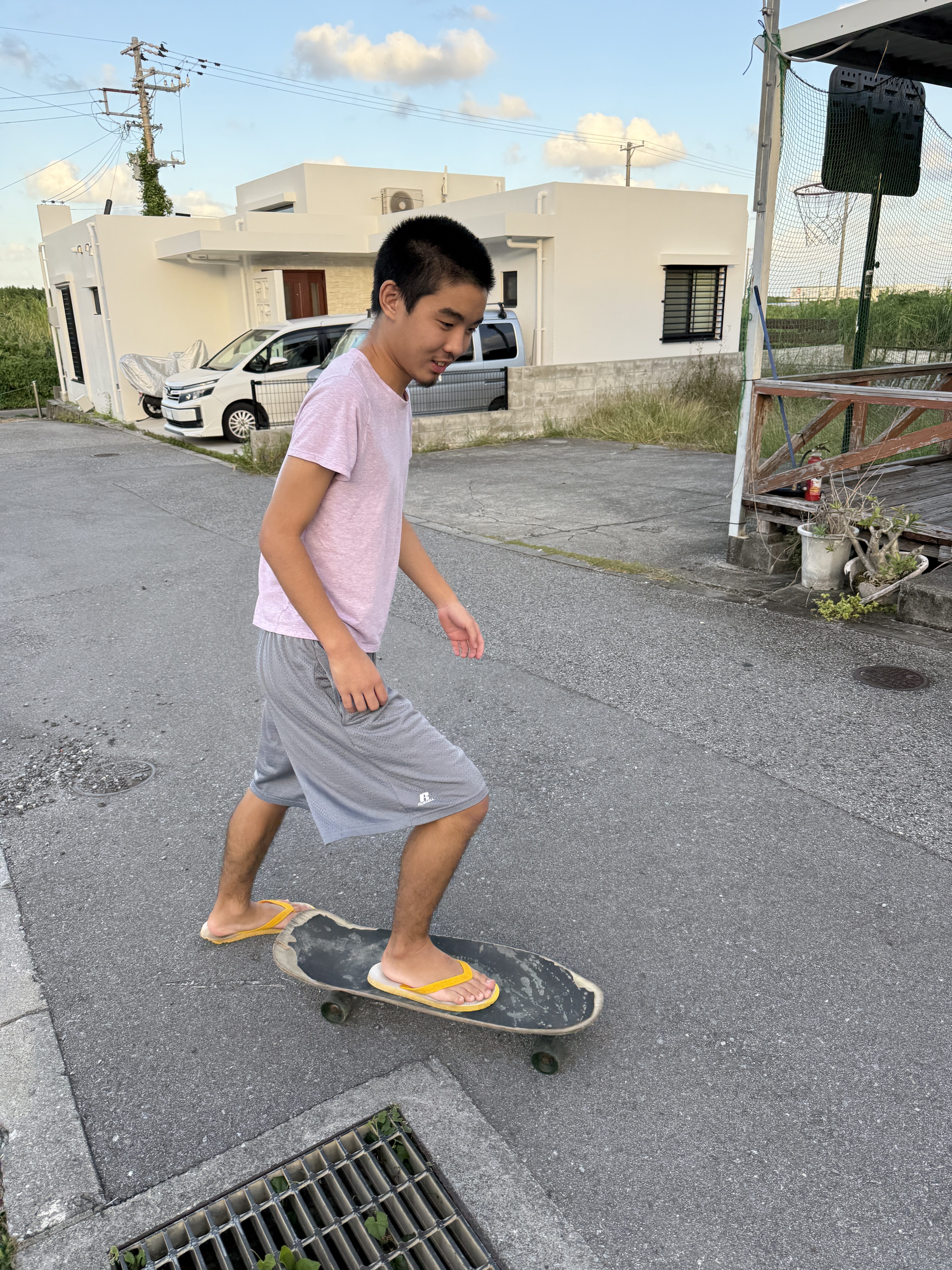 昼間寝ていた子は夕方スケボー🛹とドライブ🚗を楽しみました😊🌇