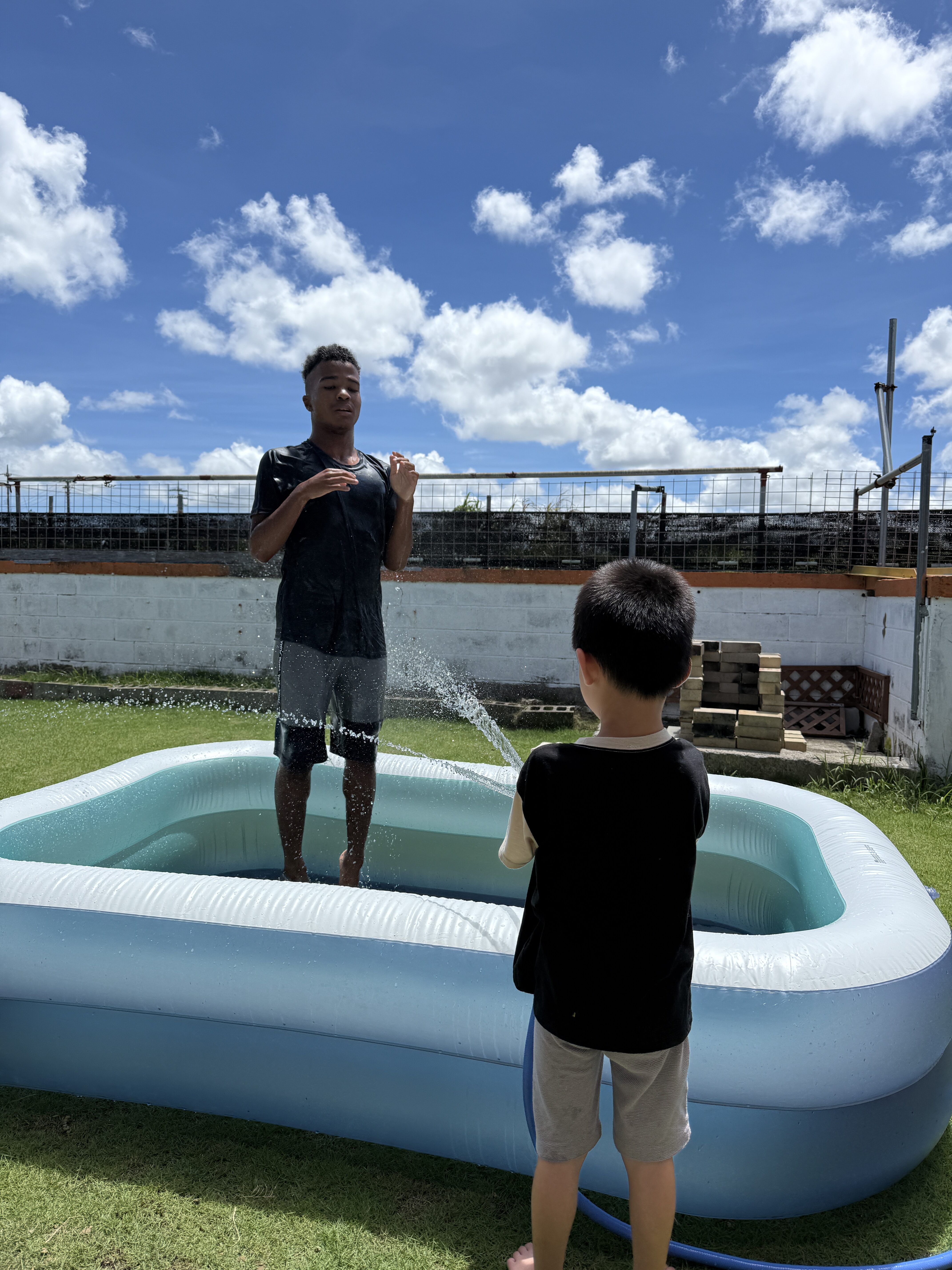 庭でのプール組は青空の下で思いっきり水遊び💦