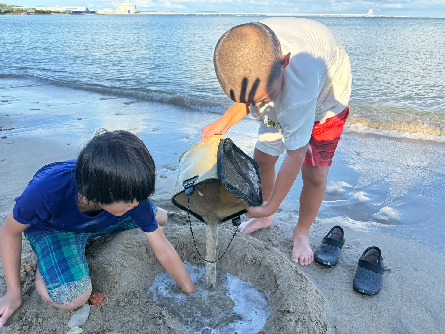 穴を掘って山を作ったり、自分の足をうめてみたり、みんな自由な発想で遊びを楽しんでいました😆✨